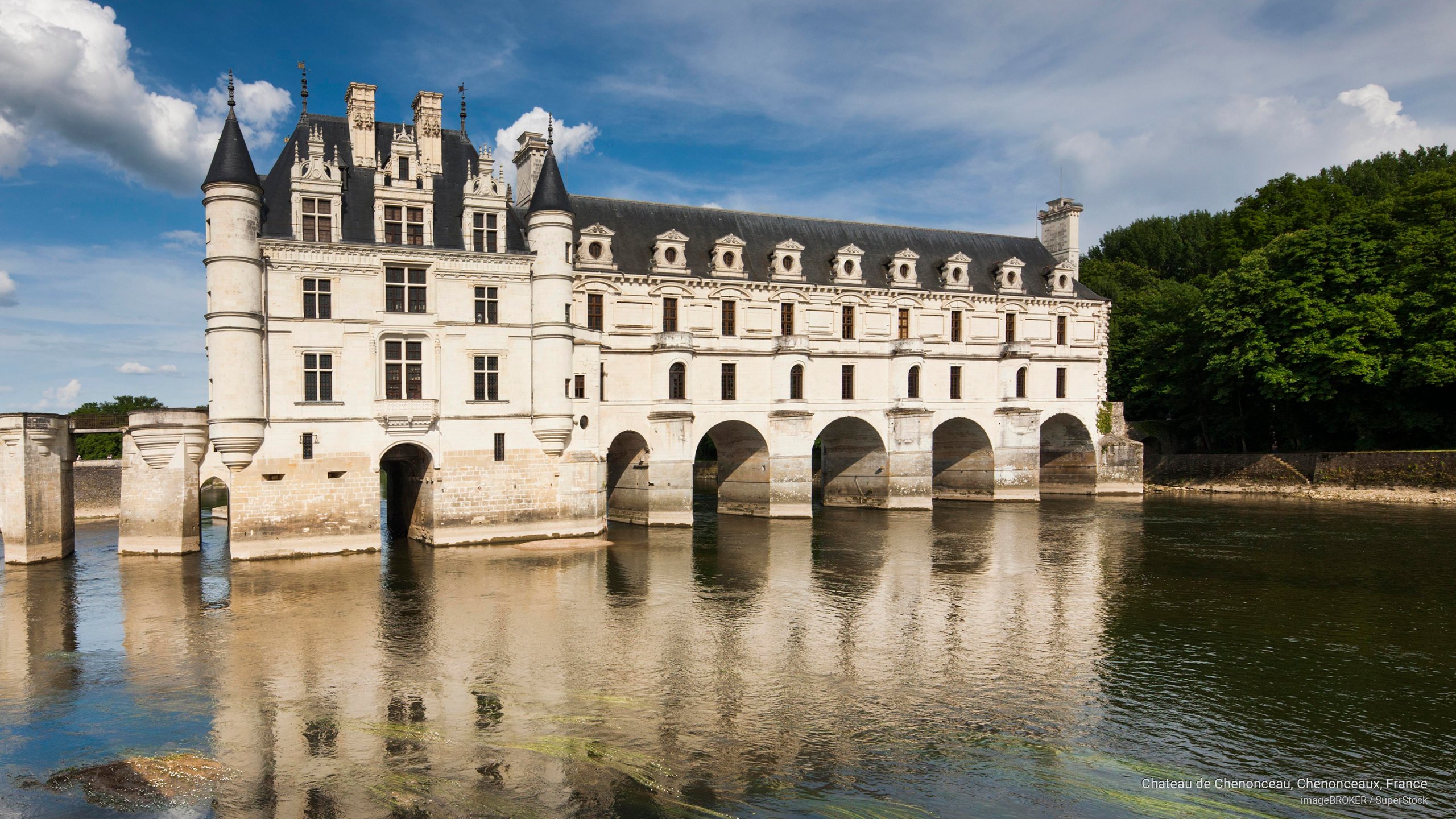 Chateau de Chenonceau is a stunning French chateau located in the Loire Valley, near the village of Chenonceaux in France. It is one of the most famous and beautiful chateaux in the Loire Valley, known for its elegant architecture and picturesque location on the River Cher. The chateau was originally built in the 16th century by Thomas Bohier, but was later acquired by King Henry II of France for his mistress, Diane de Poitiers. Diane added the iconic arched bridge that connects the chateau to the opposite bank of the river, which remains one of the most recognizable features of the chateau today. After King Henry II's death, his wife, Catherine de' Medici, took ownership of the chateau and made significant renovations and additions to the property, including the exquisite gardens and a gallery that spans the river. Chateau de Chenonceau has a rich history and has been visited by many notable figures throughout the centuries, including Mary, Queen of Scots, and Voltaire. Today, the chateau is open to the public and is a popular tourist destination, attracting visitors from around the world who come to admire its stunning architecture, beautiful gardens, and rich history.